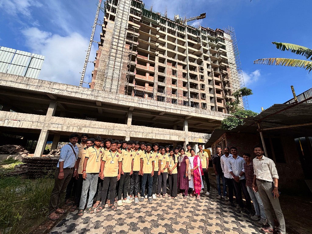 The second and third year Civil Engineering students of SDM Polytechnic, Ujire, visited the New Mangaluru Port Authority (NMPA) and the Lucent Apartment building at Kottara Chowki of Mohtisham Complexes Pvt. Ltd. on 25th September 2025. The visit provided students with valuable exposure to large-scale infrastructure projects and modern construction practices, enhancing their practical knowledge beyond classroom learning. The event was well-coordinated by the Civil Engineering faculty members Mr. Praveena P, Mrs. Renu, Mr. Ashwin, and Mrs. Tripthi Shetty.