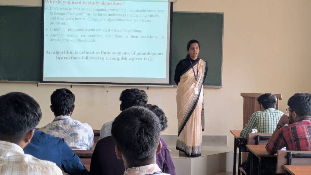 Guest Lectures on “Algorithm Analysis” were held at SDM Polytechnic, Ujire on January 7 and 8 for the second-year students of the Computer Science and Engineering Department. The programme was organized to enhance students’ understanding of fundamental concepts related to algorithm efficiency and design. Ms. Rashmi G. S., Former Full Stack Developer, served as the resource person and delivered insightful sessions on how to analyze an algorithm, calculate time and space complexity, and apply asymptotic notations. She also explained Abstract Data Types using simple real-world examples, which helped students grasp the concepts effectively. The programme began with a warm welcome by Ms. Manjusha Hegde, who also proposed the vote of thanks, marking the successful conclusion of the guest lectures.