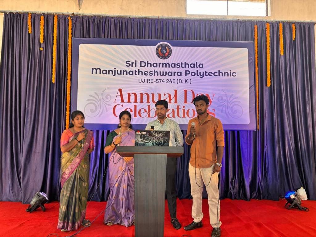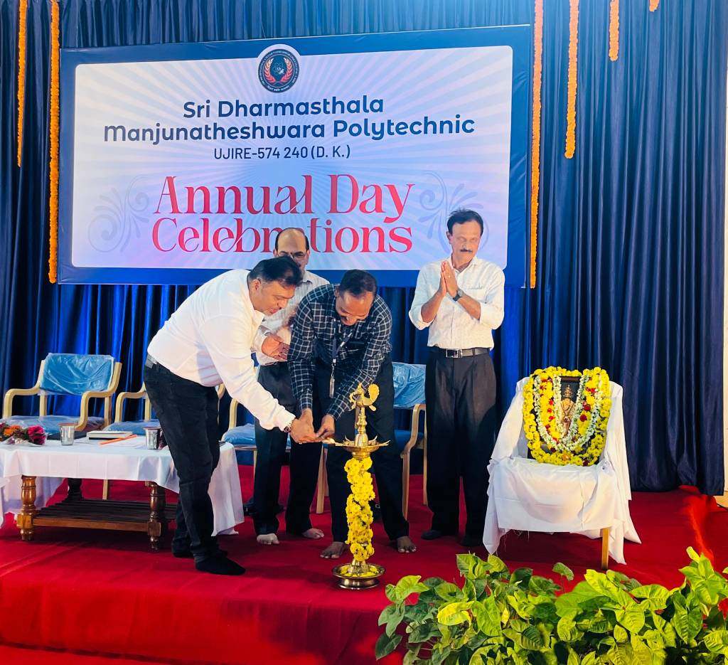 The Annual Day was held at the workshop hall on April 11, 2026. The youth of today represent the true wealth and future of India. Emphasizing the need for holistic development, Sandeep S. P., HR Head of Pratt & Whitney India and former HR professional at Rolls-Royce India (Bengaluru division), stated that students must not confine themselves to a single discipline but should stay informed about ongoing advancements across various fields. He highlighted that diploma graduates will witness vast opportunities in the coming decades and must equip themselves with skills to face emerging challenges such as artificial intelligence.
